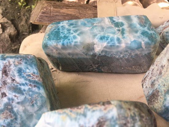 Larimar is soothing, calming and is associated with the throat chakra due to its cool blue color. Larimar has a distinct vibration that is centered in the throat chakra but can felt in the heart chakra upwards when in contact with the body. When you hold larimar to the heart chakra, it can assist in unblocking emotional pain for the user.